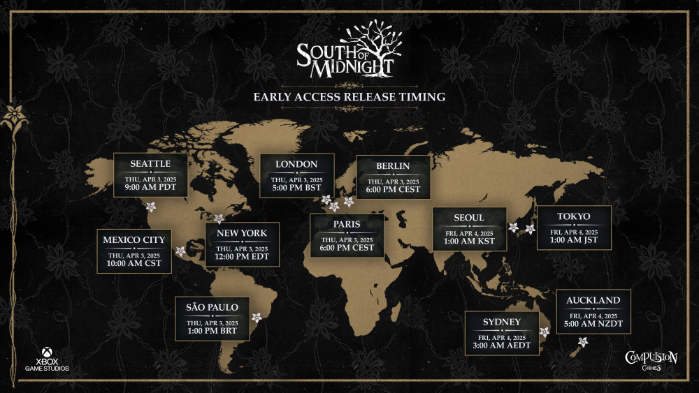 Команда Compulsion Games, разработчики, славящиеся своими уникальными творениями, объявила о точном графике запуска своей новой игры South of Midnight в раннем доступе. Этот проект, выходящий под эгидой Xbox Game Studios, станет доступен пользователям по всему миру, однако время старта будет варьироваться в зависимости от региона.